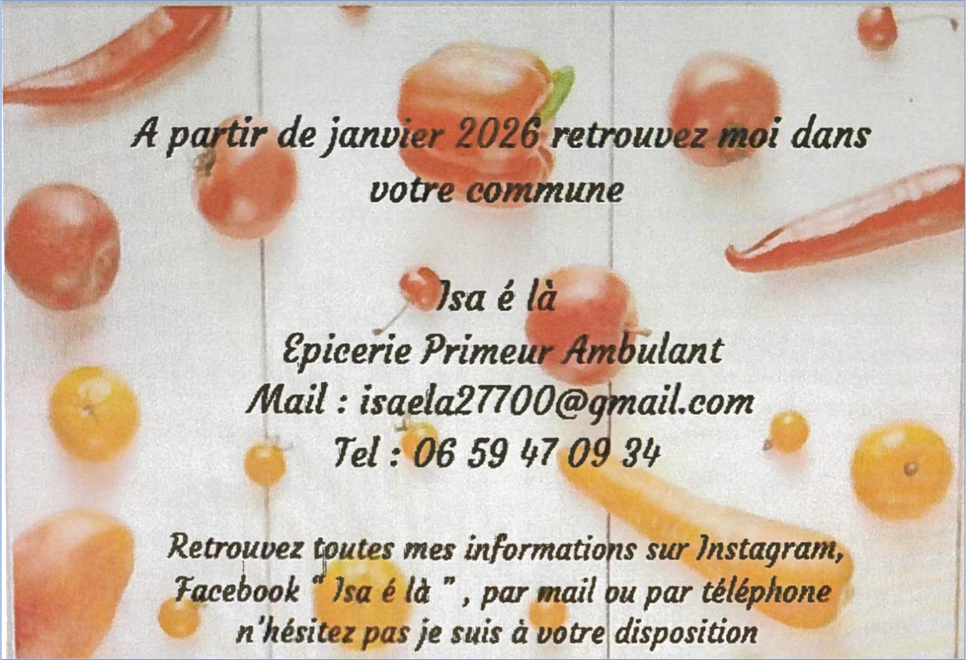 Vente itinérante : épicerie primeur les mercredis matin de 10h00 à 13h30 place de la Mairie Amfreville les Champs